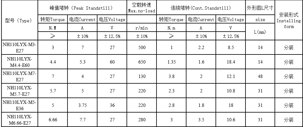 | NH110LYX系列直流力矩電機 |